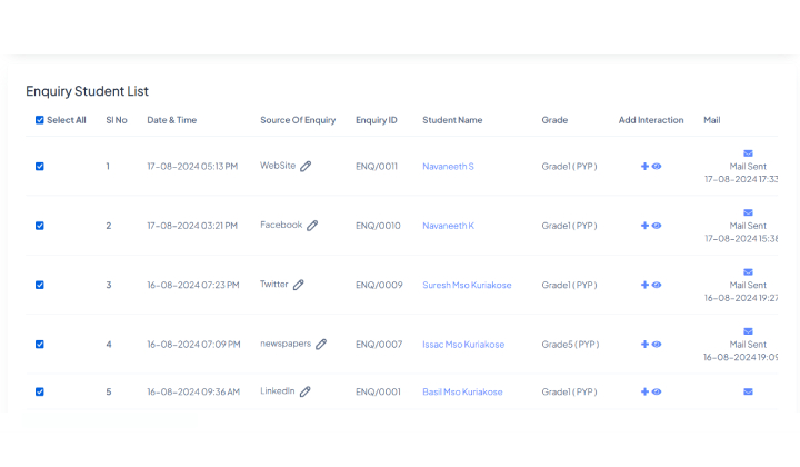 MySchoolOne enables the admission team to screen all the enquiries via all the Campaigns to check and authenticate the enquiry and push them to the enrolment process.